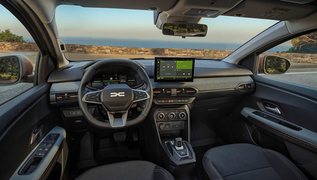 Dış tasarımda Dacia’nın yeni kimliğini temsil eden ters “T” formlu LED far imzası tüm modellerde standart hale getirildi. Jogger modelinde dikey konumlandırılan arka aydınlatma grubu dikkat çekerken, Sandero Stepway’de tampon ve farlar arasında mat siyah şeritler kullanıldı. Dış aksamda öne çıkan ve %20 oranında geri dönüştürülmüş polipropilen içeren Starkle® malzeme teknolojisi; çamurluk kemerleri, alt gövde korumaları ve sis farı çerçevelerinde uygulanıyor. Boyaya ihtiyaç duymayan bu dayanıklı malzeme, hem üretimdeki karbon ayak izini azaltıyor hem de çiziklerin daha az görünür olmasını sağlıyor.