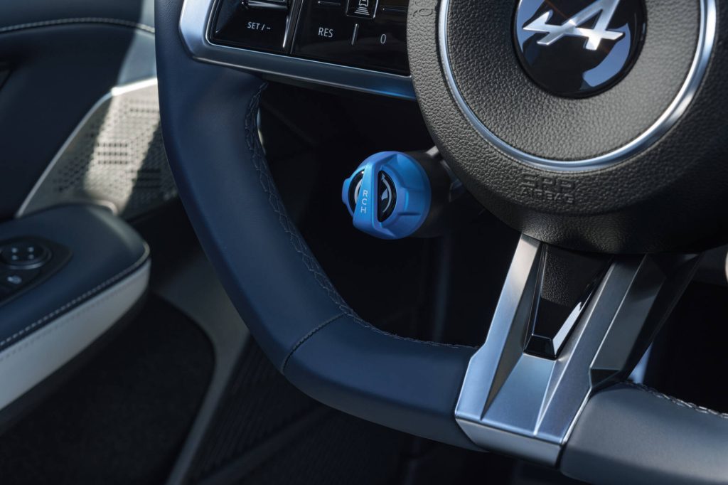 Alpine A390, iç mekânıyla tamamen sportifliğe adanmış bir ortam ortaya koyuyor. Deri kaplı ön konsol, orta konsol ve kapı panelleri bu izlenimi güçlendiriyor. Ayrıca içerisinde Alpine’in mavi rengiyle sofistike bir aydınlatma atmosferi de bulunuyor. Sürücü odaklı bir mimariye sahip olan kokpit, 12,3 inç ve 12 inç yüksek çözünürlüklü ekranlarla bezenmiş. Fiziksel iklimlendirme paneli, sürücünün gözlerini yoldan ayırmadan ayarları değiştirmesine olanak tanıyor. Düz kenarlı ve Napa Mavi rengindeki spor direksiyonda ısıtma özelliğine ek olarak; sürüş modları, sürüş yardımcıları, telefon, sesli asistan ve gösterge paneli ekran modlarına ait kontroller de bulunuyor. Formula 1 dünyasından esinlenerek tasarlanan iki özel renkli alüminyum düğme, rejenerasyon seviyesini (mavi RCH düğmesi “Şarj”), tek pedal modunu ve sollama ile kalkış kontrolü için kullanılan Boost (kırmızı OV düğmesi “Geçiş”) işlevlerini kontrol ediyor. Ayrıca sesli komut için özel bir anahtar sistemi de mevcut.
