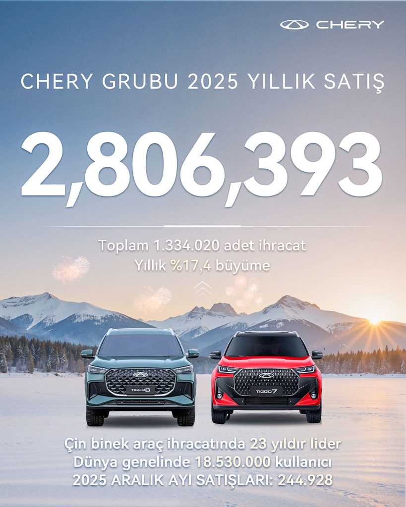 Chery Grubu, 2025 yılını 2 milyon 806 bin 393 adetlik satış ve yüzde 7.8 büyüme ile tamamladığını açıkladı.
