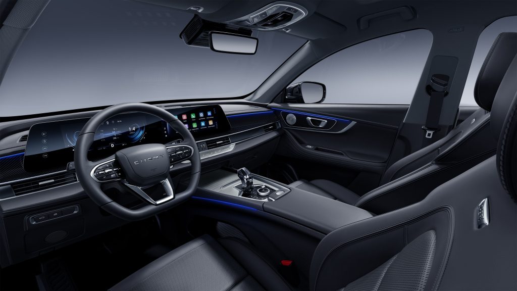 TIGGO7 PRO MAX Black Edition’ın premium hissettirmeyi amaçlayan duygusu kabin içinde de devam ediyor. Spor hatlara sahip suni deri koltukların yanı sıra, iç mekânın merkezinde kristal kesim elmas vites kolu mücevher benzeri bir odak noktası oluşturuyor ve detaylara verilen titiz özeni sergiliyor. Üst bölümdeki 1,1 metrekarelik geniş panoramik cam tavan (anti-pinch korumalı) kabine doğal ışık doldurarak açık bir atmosfer yaratıyor. 64 renkli kişiselleştirilebilir ambiyans aydınlatma sistemi her ortam için /bir ruh hali yaratırken, Sony premium ses sistemi kullanılmış. Modelin iç mekânında yer alan tepkisel 24,6 inçlik çift ekranlı bilgi-eğlence sistemi, navigasyon, eğlence ve araç kontrollerini parmak uçlarına getiriyor.