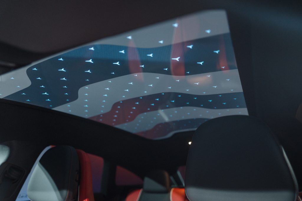Geniş panoramik tavan, segmentinde yeni bir standart belirleme amacında görünüyor. Güneş ışınlarına karşı koruma sağlamak için, iç kısmında kızılötesi yansıtıcı ve düşük emisyonlu (LowE) kaplama bulunan ısı yalıtımlı lamine güvenlik camından oluşuyor. Bu, yazın aracın iç kısmının ısınmasını azaltıyor. Kışın ise LowE kaplama, iç ısıyı odaya geri yansıtarak ısı kaybını azaltır. 200 nanometre kalınlığıyla, çapı yaklaşık 50.000 nanometre olan insan saçından daha ince. Panoramik tavan, isteğe bağlı olarak yeni bir fonksiyonla sunuluyor. Bu fonksiyon sayesinde camın şeffaflığı 10 ila 20 milisaniyede değiştirilebiliyor. Yolcular, yukarıyı net bir şekilde görebilmek için şeffaf veya daha fazla mahremiyet için opak seçenekleri arasında seçim yapabiliyor. Opak (sütlü) durum, dışarıdan meraklı bakışlara karşı koruma sağlamanın yanı sıra, doğrudan güneş ışığında parlamaya karşı da gelişmiş koruma sağlıyor. Bu özellik, ana ünitedeki araç ayarlarındaki ilgili menü aracılığıyla çalıştırılıyor.