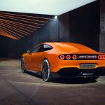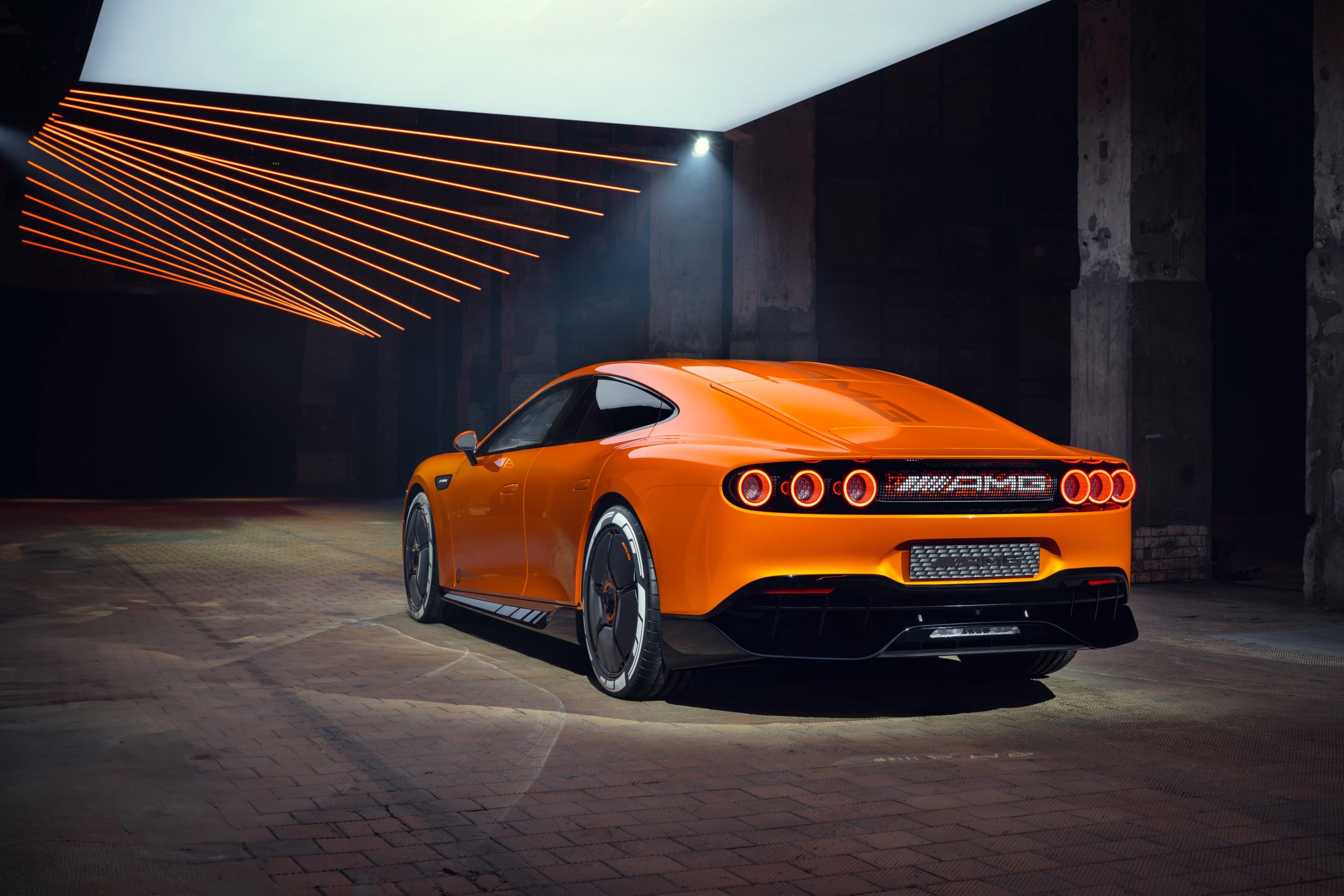 Dinamik fastback’i, alçak kaputu ve keskin eğimli ön camıyla CONCEPT AMG GT XX, markanın imza niteliğindeki spor otomobil performansının bir ifadesidir. Gün batımı turuncusu çarpıcı renk şeması özgüveni yansıtır.
