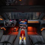 CONCEPT AMG GT XX’in iç mekanı, lüks bir görünüm ve his sunarken bir yarış arabası gibi temel unsurlara indirgenmiştir. İç mekan neredeyse tamamen siyaha gömülmüştür. Bu nedenle, gümüş ve turuncu vurgular açıkça ön plana çıkar ve teknik öğelere görsel olarak minimalist odaklanmayı vurgular. Sahnenin merkezinde, göründükleri kadar iyi hissettiren farklı dokulara sahip yüksek kaliteli malzemeler yer alır. Yüksek voltajlı kablolardan esinlenen görünür gövde yapıları ve iç mekan bileşenleri, AMG’nin kökeni olan motor sporlarıyla yakın bir bağlantı oluşturur. İki entegre ekrana sahip saf kokpit tamamen sürüşe odaklanmıştır. Araç ve tüm göstergeleri iki büyük LCD ekran aracılığıyla kontrol edilir: 26 santimetrelik (10,25 inç) gösterge paneli ve 35,6 santimetrelik (14 inç) multimedya dokunmatik ekran. Ekranlar sürücüye doğru ergonomik olarak açılıdır ve kusursuz bir cam görünümüne sahiptir.