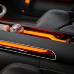 Heykelsi minimalist kapı kaplamaları, ekstrüzyon yapısına sahip bir kol dayanağıyla delinir. Kapı panellerindeki hafifçe arkadan aydınlatılmış yarış delikleri, siyahı parçalayan ikinci bir okuma efekti sağlar.