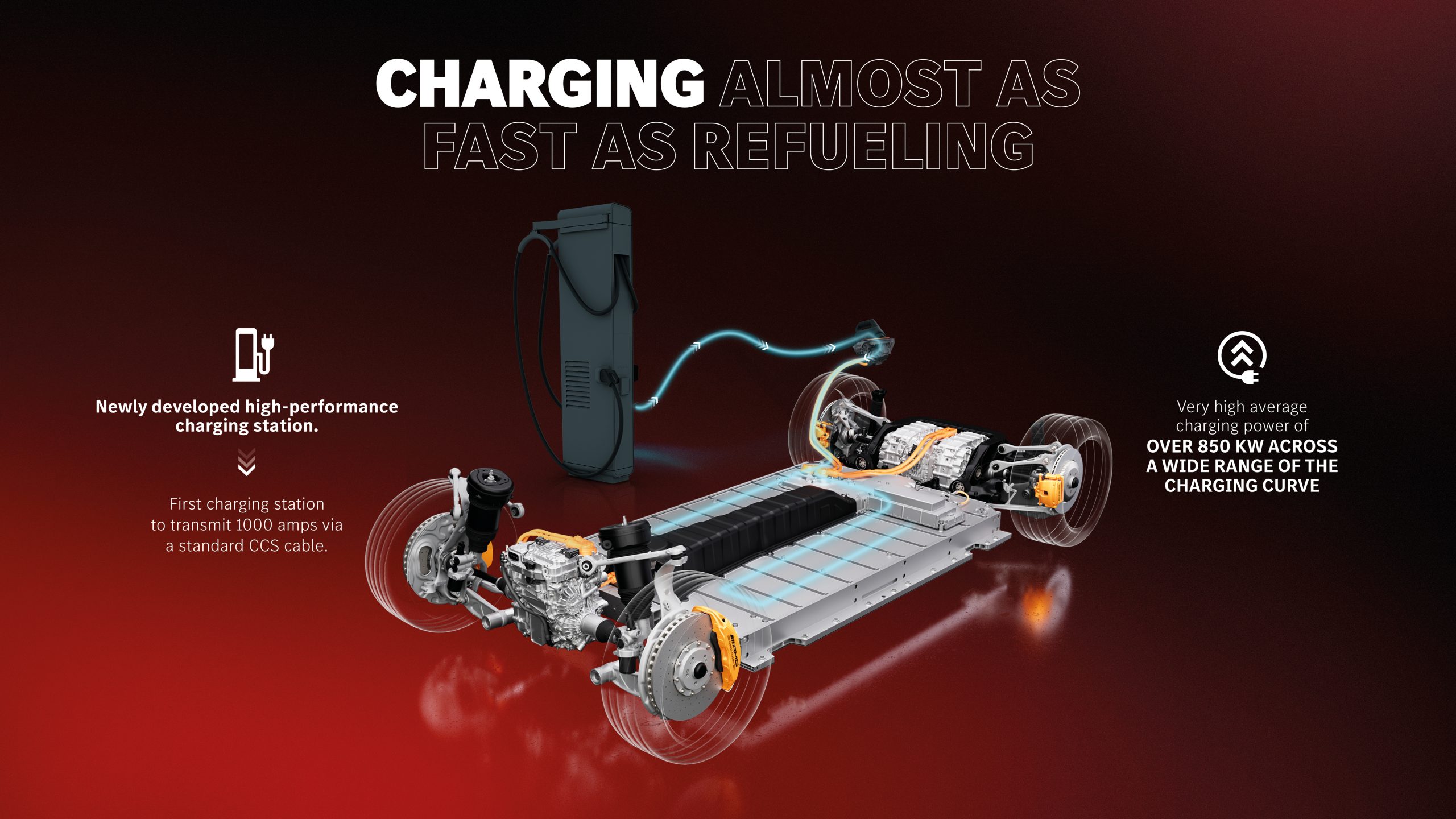 Aracın şarj performansına uyum sağlamak için Mercedes-Benz Şarj Ünitesi, yüksek güçlü şarjda Avrupa pazar lideri olan ortağı Alpitronic ile yakın işbirliği içinde çalıştı. Alpitronic bir prototip şarj istasyonu geliştirdi. Bu, standart bir CCS kablosu üzerinden böylesine yüksek bir akımı iletebilen ilk şarj istasyonudur.
