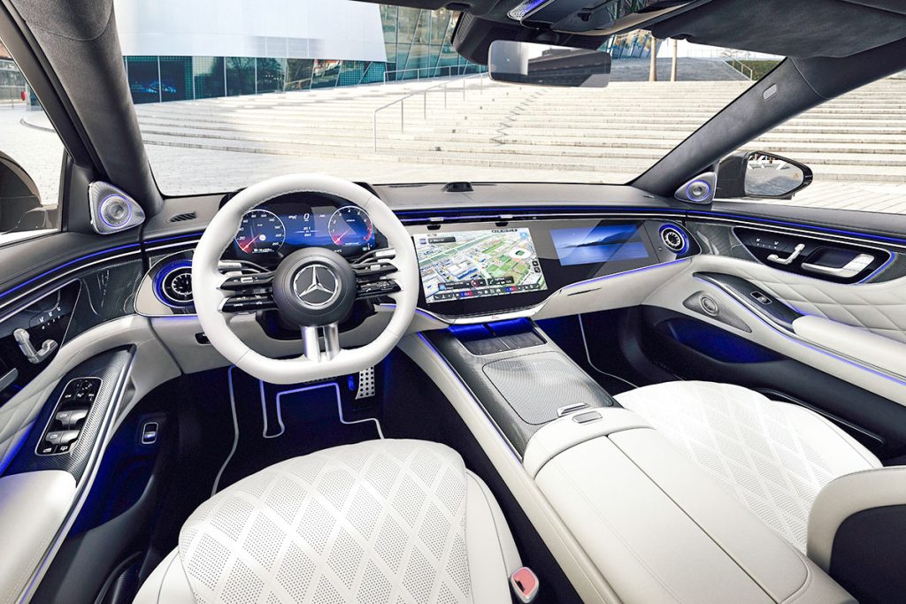 • MBUX Superscreen: Standart olarak sunulan bu konsept; 14,4 inçlik merkezi ekran ile 12,3 inçlik yolcu ekranını tek bir cam panel altında birleştiriyor.