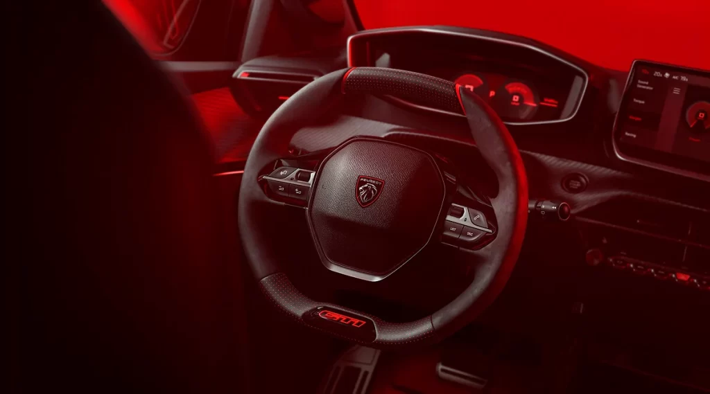 E-208 GTi, kullanıcılarının araçla “bir” olmasını sağlayacak şekilde tasarlanmış ön koltuklara sahip. Hem tabanda hem de yanlarda özellikle saran koltuklar, koltuk başlıklarını entegre ediyor. Sportif sürüşte etkili destek sağlarken, günlük yaşamda da konforlu ve pratik olması hedeflenmiş ve PEUGEOT GTi’nin DNA’sının bir parçası olan çok yönlülüğü garanti ediyor. E-208 GTi’nin direksiyonunun hassasiyeti, dinamik sürüşe uygun, özellikle doğrudan bir tepki sunmak için özel olarak kalibre edilmiş. Sürücüler kendilerini gerçekten sportif bir atmosfere kaptırmak istediklerinde, E-208 GTi oyuna hazır. Dijital gösterge panelinin ve merkezi ekranın grafikleri standart konfigürasyonda kırmızı renkli ve belirli performans gösterge sayfaları da mevcut. Ortam aydınlatması da varsayılan olarak kırmızı renkli (yedi farklı renk mevcut). Bu sportif kırmızı aydınlatmaya tüm duyuları uyandıran bir yerleşik sürükleyici ses deneyimi eşlik ediyor. Motorun performansından türetilen bu aydınlatma daha fazla sürüş hissi sunuyor ve sürücünün tercihine göre kolayca etkinleştirilebilir veya devre dışı bırakılabiliyor.