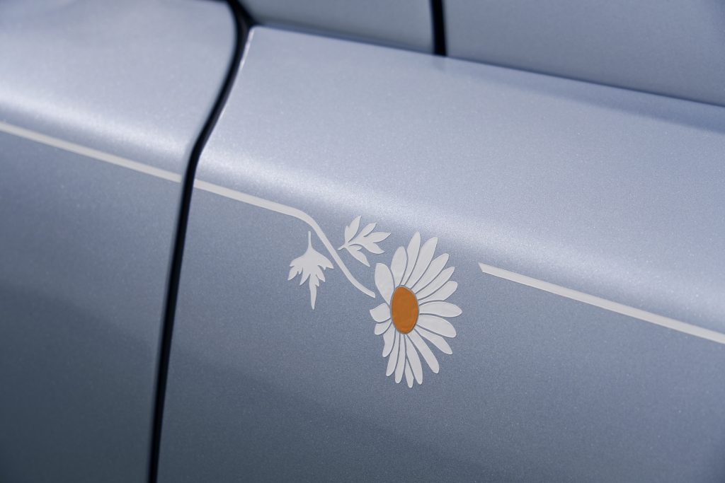 Papatya çiçeği, Powder Blue (toz mavisi) dış gövde renginde uygulanan tek Coachline’ı tamamlayacak şekilde, elle boyanmış bir Coachline motifi olarak karşımıza çıkıyor. Yumuşak renk paleti, koyulaştırılmış Black Badge Pantheon ızgarası, Spirit of Ecstasy heykeli ve dış cephedeki parlak detaylarla bir kontrast oluşturuyor. Bu iç mekan tasarımını süsleyen papatya motifi, arka koltuklardan öne doğru bir geçiş ve orta konsol bölümüne de dokunuş katmış görünüyor. Tasarım, kumlama tekniği kullanılarak Blackwood yüzeyine özenle uygulandı. Bu işlemde, ince mineral parçacıklardan oluşan akış kaplamaya doğru yönleniyor ve yüzeyin mikroskobik katmanlarının hassas bir şekilde aşındırılması sonucu desen ortaya çıkıyor. Işığın ve gölgenin heykelsi yüzeyindeki etkileşimi, üç boyutlu bir etki yaratarak esere görsel bir ilgi katıyor.