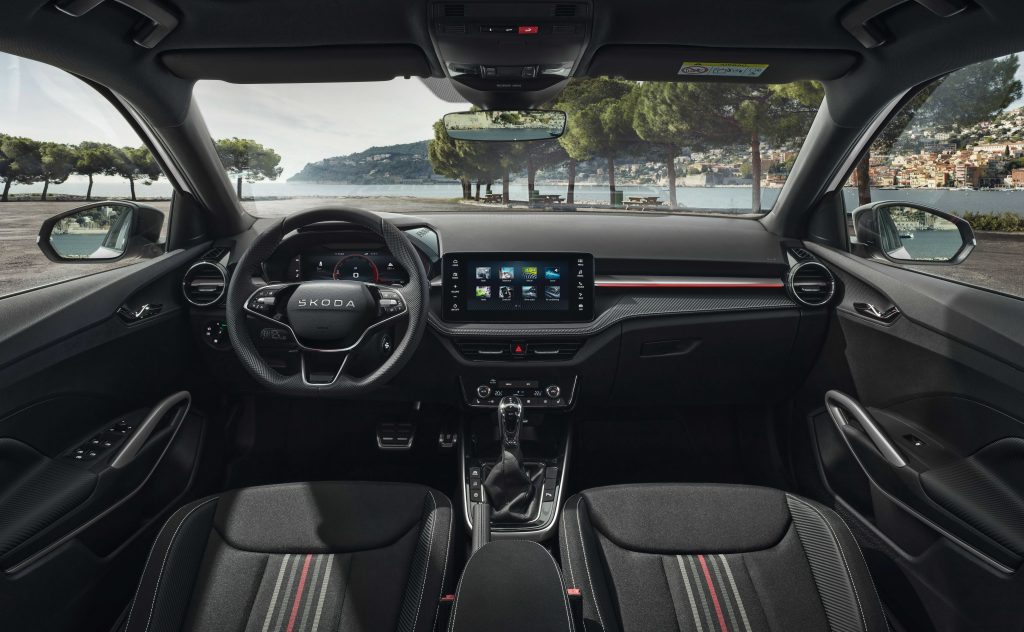 Fabia 130’un iç mekânı, sürüş konforu ve hakimiyeti ön plana çıkartıyor. Yan destekli spor koltuklar, üç kollu çok fonksiyonlu spor direksiyon ve paslanmaz çelik pedallar Fabia’nın sportif kimliğini güçlendiriyor. Siyah alüminyum kapı eşikleri ve gümüş dekoratif detaylar, iç mekânda özel bir ambiyans yaratıyor.